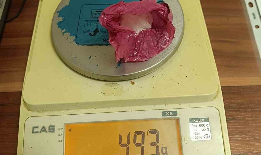 Muş İl Emniyet Müdürlüğü Narkotik Suçlarla Mücadele Şube Müdürlüğü ekipleri, uyuşturucu madde kullanımı ve ticaretinin önlenmesine yönelik yürüttükleri çalışmalar kapsamında Sunay Mahallesi Şehit Akif Ağaoğlu Caddesi üzerinde bir kişiyi takibe aldı. Ekiplerin durdurduğu şahsın üst aramasında 4,93 gram metamfetamin ele geçirildi.