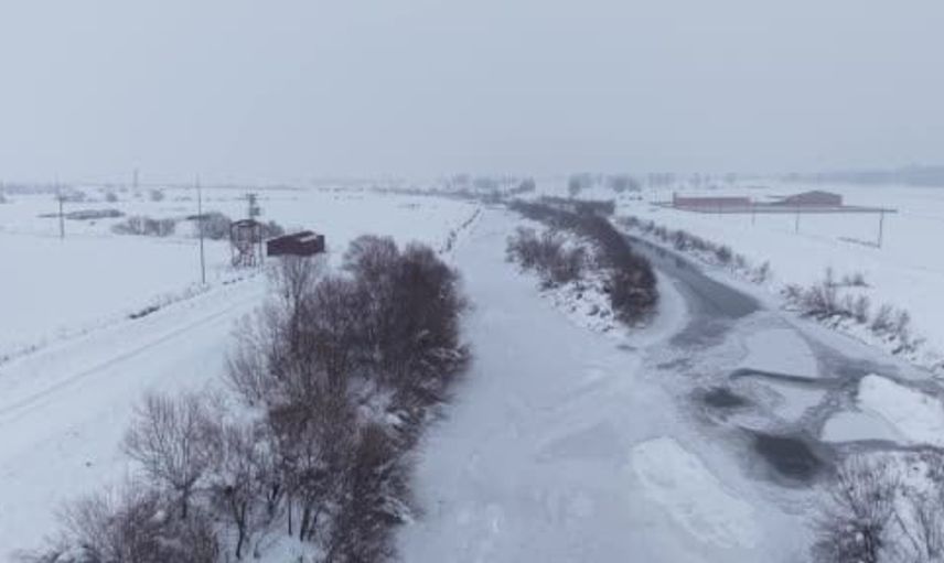 Muş'ta Karasu Nehri tamamen buzla kaplandı
