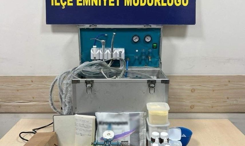 Alınan adli arama hükmü doğrultusunda, 19 Ocak günü saat 16.30 sıralarında belirtilen adrese operasyon düzenlendi. Yapılan aramada; diş kompresörü, diş kalıpları, takma dişler, diş aynaları, yapıştırıcılar, ölçü malzemeleri, müşteri defteri ve dişçilikte kullanılan çok sayıda ekipman ele geçirildi.