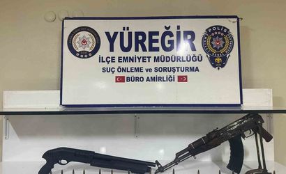Adana'nın Yüreğir ilçesinde bir evin mutfak dolabında yapılan arama sonucunda AK-47 ve pompalı tüfek bulundu.