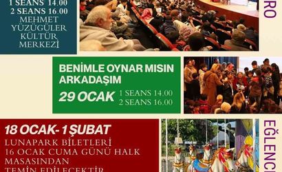 Programın ilk ayağında tiyatro oyunları sahnelenecek. 28 Ocak tarihinde Mehmet Yüzügüler Kültür Merkezinde Karagöz’ün Cehaleti adlı oyun saat 14.00 ve 16.00 olmak üzere iki seansta izleyicilerle buluşacak. 29 Ocakta aynı saatlerde Benimle Oynar Mısın Arkadaşım adlı çocuk oyunu sahnelenecek.