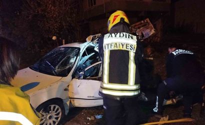 Nazilli'de ağaca çarpan sürücü itfaiye tarafından kurtarıldı