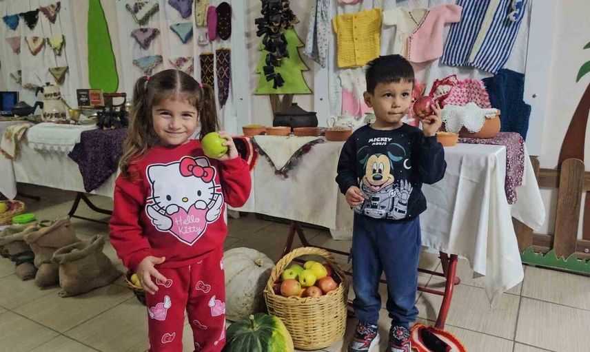 Okul bahçesinde düzenlenen sergi protokolün yoğun ilgisini çekti. Sergide sebze ve meyveler ile birlikte el yapımı eşyalar yer aldı ve protokol üyelerine ürünler hakkında bilgiler verildi. Etkinlik sırasında Hacivat-Karagöz oyunu da sergilendi; minik öğrenciler gösteriyi büyük bir heyecanla izledi.