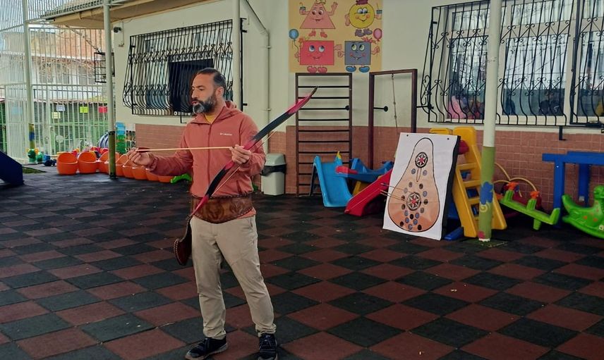 Etkinlik kapsamında miniklere görsel sunumlar eşliğinde teorik bilgiler verilirken, 36-66 Ay aralığındaki çocuklar ok ve yayı deneyimleme fırsatı buldu. Yayı germeye güçleri yetmeyen öğrencilere öğretmenleri destek oldu. Öğretmenler ve veliler de uygulamalı ok atışı deneyimi yaşadı.