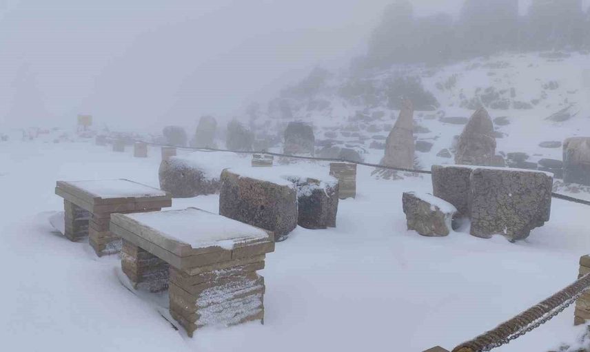 Nemrut Dağı'nda sezonun ilk karı: Heykeller beyaza büründü