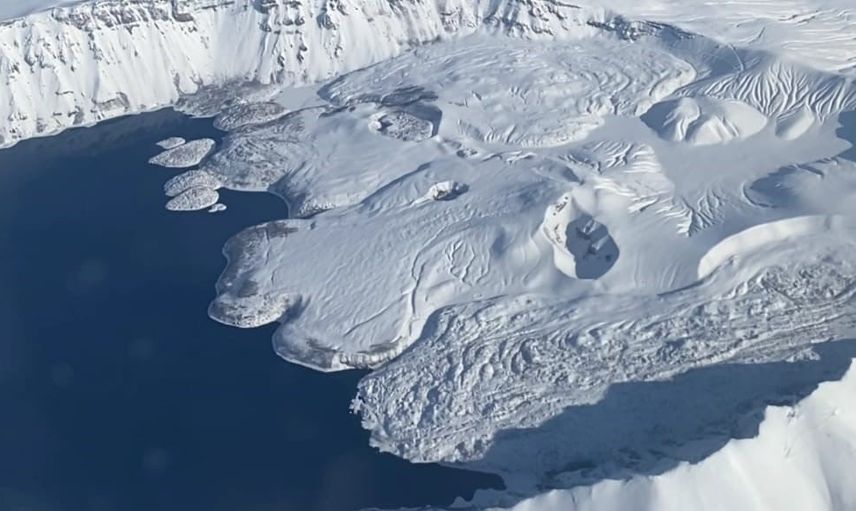 Nemrut Krater Gölü, Bitlis'in Ahlat, Güroymak ve Tatvan ilçeleri sınırlarında yer alan ve Türkiye’nin en büyük krater gölü olma özelliğini taşıyor. Kışın beyaz örtüyle kaplanan alan ve buz tutan göl, havadan bakıldığında benzersiz bir panorama oluşturuyor.