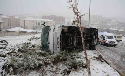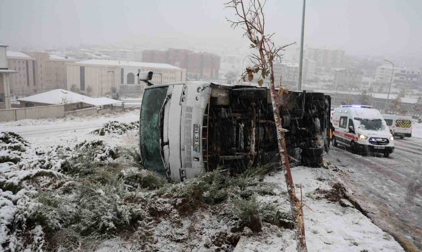 Nevşehir'in Mehmet Akif Ersoy Mahallesi, Kayaşehir yolu mevkiinde işçileri taşıyan bir servis aracı takla attı. Rampa aşağı iniş sırasında yolda oluşan buzlanma nedeniyle sürücünün direksiyon hakimiyetini kaybettiği bildirildi. Sürücü A.A. idaresindeki aracın plakası 50 EC 110 olarak kayıtlara geçti.