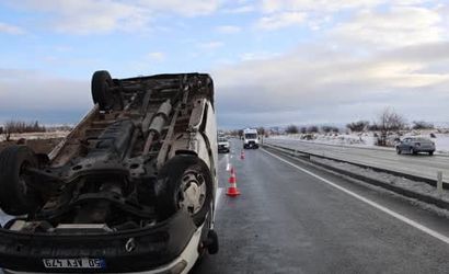 Sabah saatlerinde meydana gelen kazada, yağışlı ve buzlu zeminde sürücünün kontrolü kaybetmesi sonucu bir minibüs önce orta refüje çarptı, ardından takla atarak karşı şeride düştü.
