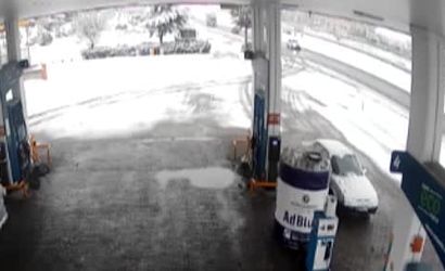 Kazada yaşananlar, bir işyerinin güvenlik kamerasınca saniye saniye kaydedildi.
