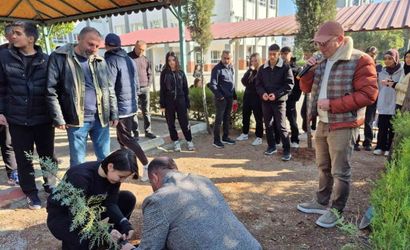 Emine Çelebi, fidana can suyunu verirken öğretmenler ve öğrenciler duygulandı. Dikilen fidanın yalnızca doğayı değil, aynı zamanda 6 Şubat Kahramanmaraş merkezli depremlerde hayatını kaybedenlerin anısını da yaşatacağı vurgulandı.