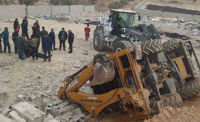 GAZİANTEP'İN NİZİP İLÇESİNDE YOL ÇALIŞMASI SIRASINDA YAŞANAN ÇÖKME NEDENİYLE KEPÇENİN DEVRİLMESİ SONUCU OPERATÖR YARALANDI.