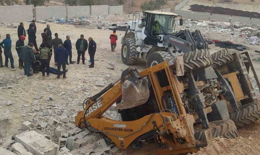 Nizip’te yol çalışmasında çökme: Kepçe devrildi, operatör yaralandı