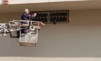 8 Mart Mahallesi'nde, Şehidül Harameyn Cami karşısındaki bir binanın demir korkuluğuna sıkışan güvercini gören mahalle sakinleri durumu itfaiye ekiplerine bildirdi.