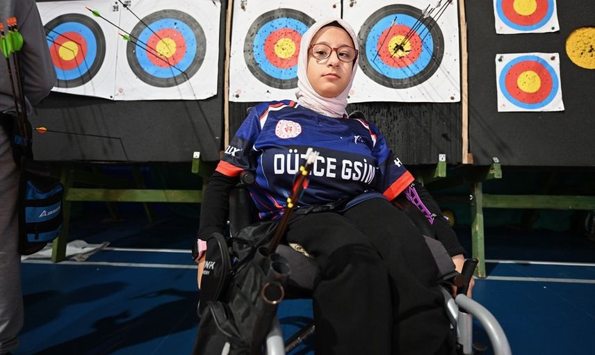 Düzce'de "ayrık omurga" (spina bifida) olarak adlandırılan doğumsal bozuklukla dünyaya gelen 11 yaşındaki Asuman Coşkun, 8 yaşında başladığı okçuluk sporunda yarışlara katılma hedefiyle çalışmalarını sürdürüyor.