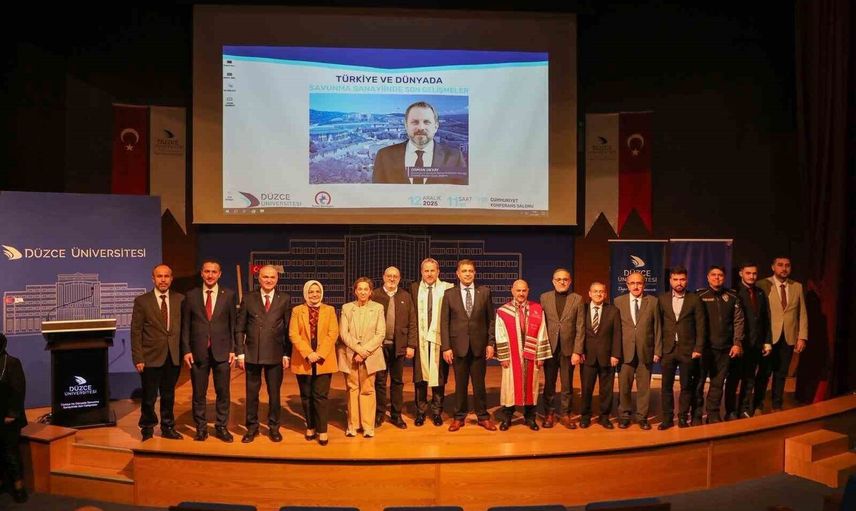 Düzce Belediye Başkanı Dr. Faruk Özlü’nün davetiyle Düzce Üniversitesi’nde düzenlenen fahri doktora törenine katılan Savunma Sanayicileri Derneği Başkanı Osman Okyay, "Dünyada ve Türkiye’de Savunma Sanayinde Son Gelişmeler" başlıklı konferansta konuştu. Doktora unvanı ve cübbe takdiminin ardından Okyay, savunma sanayinin önemini ve bu önemi oluşturan temel etkenleri anlattı.