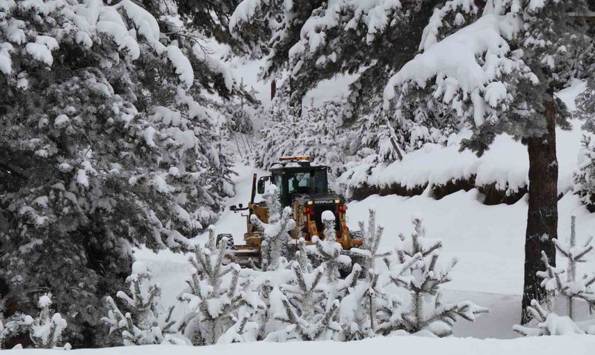 Kar yağışı nedeniyle kapanan yolların açılması için ekipler aralıksız görevde