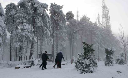 Denizden 530 metre yükseklikteki mevki karla kaplanırken, bölge sakinleri doğanın sunduğu manzaranın tadını çıkardı
