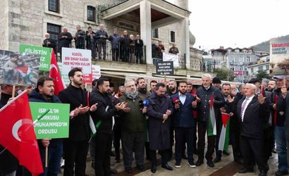 ORDU'DA, İSRAİL'İN FİLİSTİN'E UYGULADIĞI ZULME TEPKİ ÇEKMEK İÇİN ÇEŞİTLİ SİVİL TOPLUM KURULUŞLARININ KATILIMIYLA BASIN AÇIKLAMASI DÜZENLENDİ.