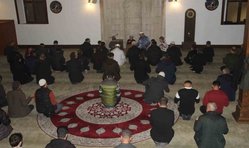 Yatsı namazının ardından kandil duası yapılırken, cami çıkışında vatandaşlara çeşitli ikramlar dağıtıldı.