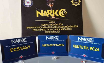El konulan maddeler: 1 gram esrar, 8 gram metamfetamin, 100 gram sentetik kannabinoid, 252 gram sentetik kannabinoid ham maddesi, 62 adet sentetik ecza, 9 adet ecstasy ve 4 kök kenevir.