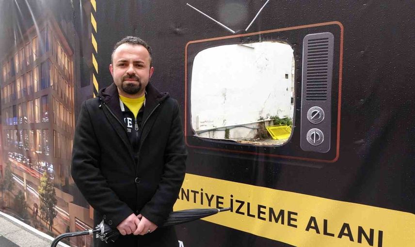 Ordu'nun Altınordu ilçesi Yeni Mahalle'de faaliyet gösteren bir inşaat firması, yeni başladığı projede televizyon şeklinde boşluk bırakarak şantiye izleme alanı oluşturdu. Televizyon temasındaki bu düzenlemeyle mahalleden geçenler, iş makinelerinin ve şantiye çalışmalarının seyrine ayrılmış bir noktadan bakabiliyor.