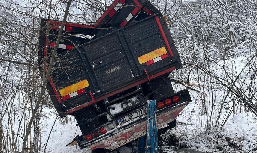 Olay: Ordu'nun Korgan ilçesinde, yem yüklü bir tır kar nedeniyle oluşan buzlanma sonucu kayganlaşan yoldan çıktı ve yaklaşık 600 metrelik uçuruma yuvarlandı.