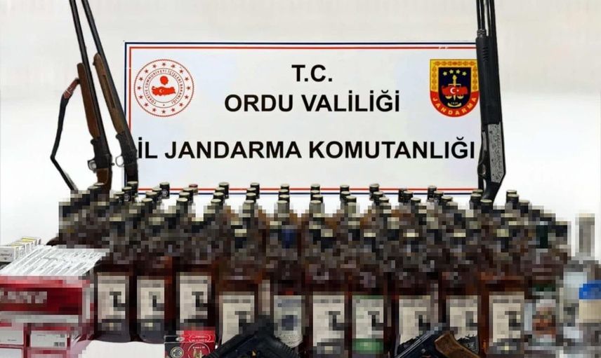 ORDU’DA JANDARMA EKİPLERİNCE DÜZENLENEN OPERASYONDA 102 LİTRE KAÇAK ALKOLLÜ İÇKİ VE 155 PAKET KAÇAK SİGARA ELE GEÇİRİLDİ.