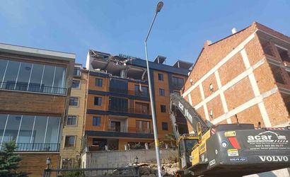 Ordu'da, temel kazısı sonrasında zeminde kayma meydana gelen ve çatlaklar oluşan binada yıkım çalışması başlatıldı.