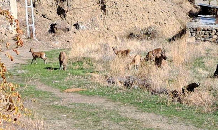 Erzurum'un Olur ilçesine bağlı Ormanağzı köyünde yaban keçileri, köy sokaklarına kadar inip evlerin arasında ve bahçelerde özgürce otluyor. Bu görüntüler, bölgedeki doğal yaşamla uyumlu yaşam tarzının bir yansıması olarak dikkat çekiyor.