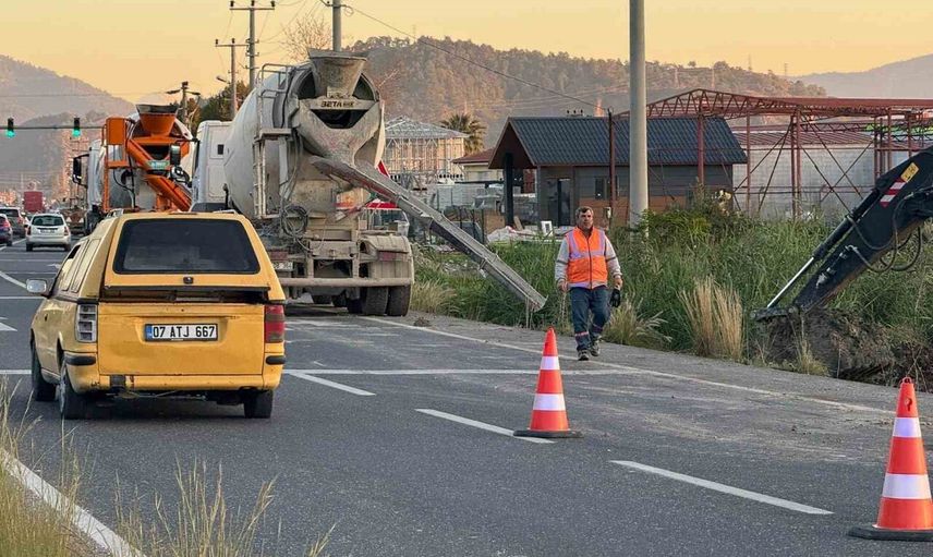 Ortaca'da beton mikseri aparatı kaldırım çalışması yapan işçiye çarptı
