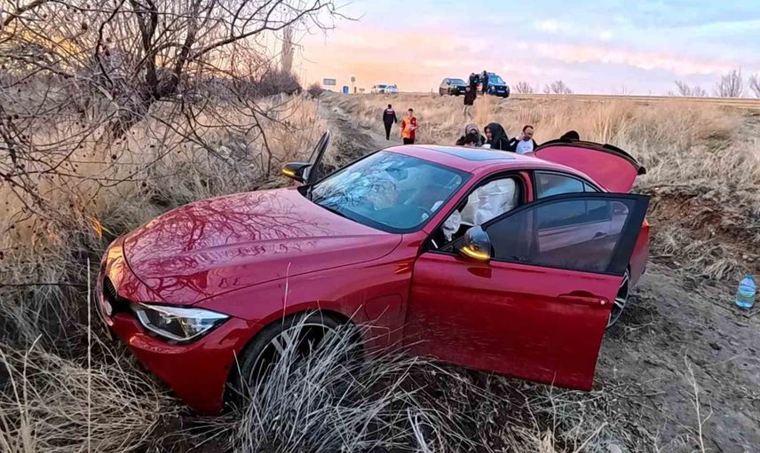 Edinilen bilgilere göre, Ankara yönünden Aksaray istikametine seyreden, sürücüsü Rıza E. (22) olan yabancı plakalı BMW marka otomobil, Ortaköy ilçesi kavşağı yakınlarında sürücünün direksiyon hakimiyetini kaybetmesi sonucu şarampole düştü.