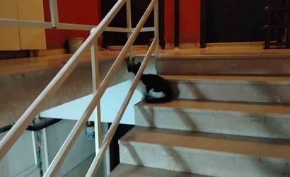 Çorum'un Osmancık ilçesinde bulunan 5 katlı bir apartmanda, binaya giren kedi henüz belirlenemeyen bir sebeple apartmanın havalandırma boşluğuna düştü.