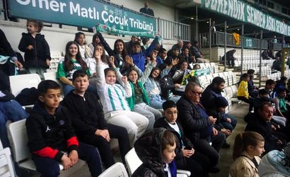 Çocuklar, Atatürk Spor Kompleksi Matlı Stadyumu Çocuk Tribünü'nde takımına destek verdi. Bursaspor'un iç saha karşılaşmasında Fethiyespor ile oynadığı mücadeleyi yaklaşık 90 dakika boyunca tezahüratlarla izleyen çocuklar, ilk kez tribünden maç seyretmenin verdiği heyecanı ve mutluluğu yaşadı.