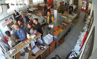 Olay anına ait güvenlik kamerası görüntülerinde, müşterilerin lokantadan hızla çıkışı ve yaşanan telaş net şekilde görülüyor.