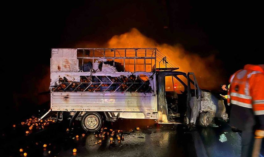 Osmaniye'nin Bahçe ilçesinde, gece saatlerinde mandalina yüklü bir kamyonetin motor bölümünde yangın çıktı.