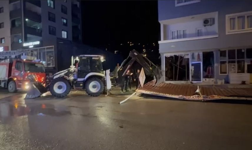 Kopan çatı parçalarının çevreye savrulması, bölgede bulunan vatandaşlarda korkuya yol açtı. İhbar üzerine olay yerine sevk edilen belediye ekipleri, önce çevrede güvenlik önlemleri aldıktan sonra tehlike oluşturan çatıyı kontrollü şekilde yıktı.