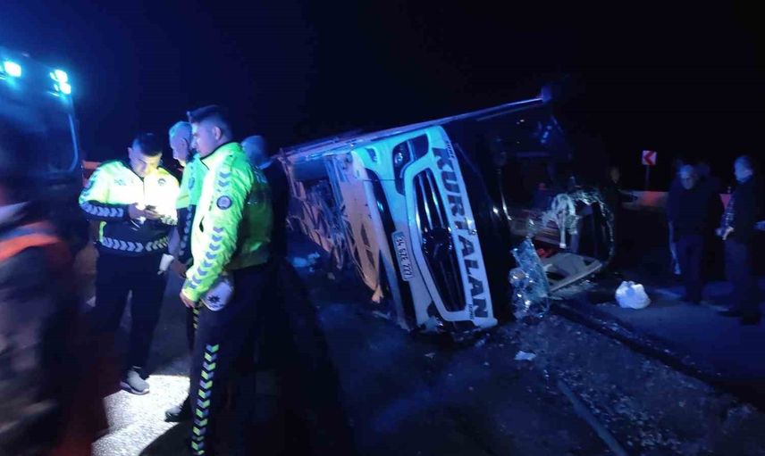 Osmaniye'de yolcu otobüsü devrildi: Yaralılar var
