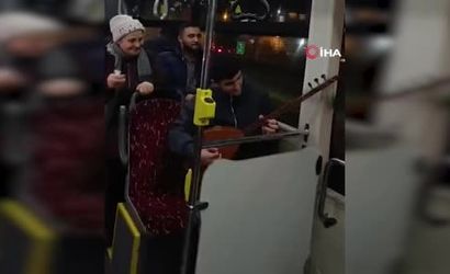 EMİNÖNÜ-ARNAVUTKÖY SEFERİNİ YAPAN İETT'YE AİT BİR OTOBÜSTE YAŞANAN SÜRPRİZ ANLAR, YOLCULUĞU ADETA KÜÇÜK BİR KONSER SALONUNA ÇEVİRDİ. SEYİR HALİNDEKİ OTOBÜSTE BİR YOLCU SAZINI ÇIKARARAK TÜRKÜ ÇALMAYA BAŞLADI. ÇALINAN TÜRKÜLER VATANDAŞLARA KEYİFLİ ANLAR YAŞATTI.