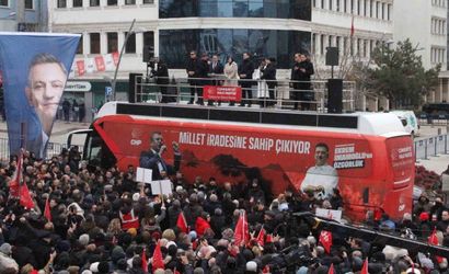 Mitingin sonunda dış politikada verilen mesajı özetleyen Özel, 'Dünyaya sesleniyorum, Trump'ın düzeni dünya düzeni olamaz. Ya bu çılgınlığa direnilecek ya da bu Trump teker teker bütün dünyanın tepesine binecek' dedi ve cumhuriyetin emperyalizme karşı kurulduğunu vurguladı.