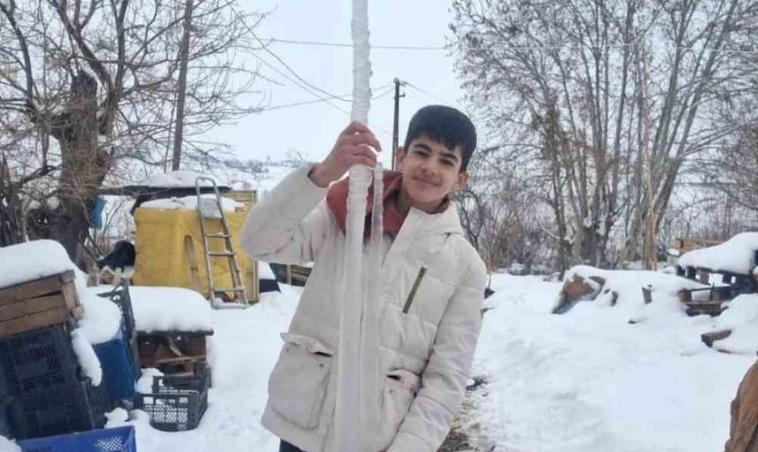 Bunların sonucunda oluşan buz sarkıtları çevrede dikkat çekti. Palu’de 2 çocuk, meydana gelen sarkıtları eline alarak fotoğraf çektirdi. Ortaya çıkan görüntüler görenleri hayrete düşürdü.