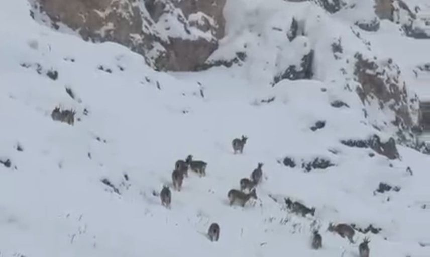 Sarp kayalıklar üzerinde ilerleyen keçiler, kış koşullarına rağmen doğayla uyumlu hareketleriyle görüntülendi. O anlar, cep telefonu kamerası ile kaydedildi ve bölgedeki doğal yaşamın çarpıcı bir örneğini ortaya koydu.