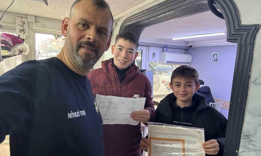 2025-2026 eğitim öğretim yılının birinci dönemi sona erdi. Sakarya'da 793 okulda eğitim gören 200 binden fazla öğrenci karnelerini alarak yarıyıl tatiline çıktı. Bu kapsamda Pamukova'da döner işletmeciliği yapan Niyazi Taş, belgeleriyle gelen onlarca öğrenciyi döner ve ayranla ödüllendirdi.