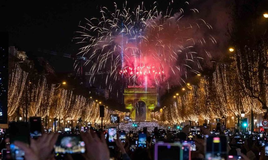 Yeni yılı karşılamak için Şanzelize Caddesi'nde toplanan binlerce kişi, Arc de Triomphe (Zafer Takı) Anıtı'na yansıtılan video gösterimleri ve ışık sunumlarını izledi. Eyfel Kulesi çevresinde düzenlenen ışık ve havai fişek gösterileriyle Paris semaları aydınlandı ve geri sayımın ardından coşkulu anlar yaşandı.