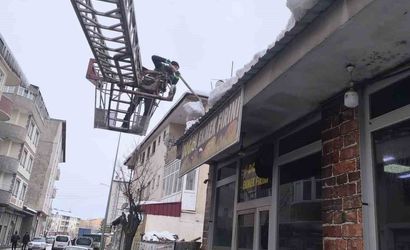 Patnos’ta çatılarda oluşan buz sarkıtlarına karşı önlemler