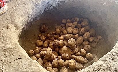 Ağrı'nın Patnos ilçesine bağlı Atatürk Mahallesi sakinleri, kışlık patateslerini yıllardır uyguladıkları geleneksel 'gömme depolama' yöntemiyle muhafaza ediyor. Bölge halkı, sert iklim koşullarında patatesin uzun süre bozulmadan kalmasını sağlayan bu yöntemi tercih ediyor.