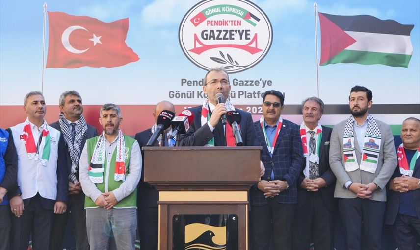 Pendik Çarşı Camisi önünde düzenlenen basın açıklamasında konuşan Pendik Belediye Başkanı Ahmet Cin, "Gazze'nin özgür olacağı günlere inanıyoruz. Bu tür etkinlikler, yapmış olduğumuz yardımların kıymetini artırıyor. Allah, bu çalışmalara vesile olanların yardımlarını kabul etsin," şeklinde konuştu.