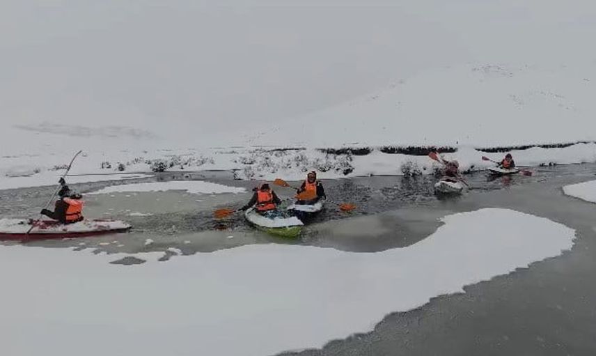 Tokat ve Ordu sınırında yer alan Perşembe Yaylası, soğuk hava ve buzla kaplanan kıvrımlı menderesleriyle bu kış doğa ve spor tutkunlarını ağırladı. Hava sıcaklığının sıfırın altında 10 derece Buz tutmuş mendereslerde ilerleyen sporcular, zaman zaman kürekleriyle kırdıkları buzların arasından yollarına devam etti. Zorlu hava koşullarına rağmen düzenlenen etkinlik, çevredeki kartpostallık manzaraları da beraberinde getirdi. Nazif Karakoç etkinlikle ilgili, "Bugün karlı bir kış gününde Tokat ile Ordu il sınırlarını birbirine ayıran muhteşem menderesleriyle ünlü Perşembe Yaylası'ndayız. Ordu kano ailesiyle beraber kar yağışı altında mendereslerde kano yapıyoruz. Sıfırın altında 10 derecede Perşembe Yaylası'nda kano etkinliğimiz devam ediyor. Arkadaşlar şu anda buzları kırarak yollarına devam etmeye çalışıyorlar" ifadelerini kullandı. TOKAT'TA HAVA SICAKLIĞININ 10 DERECEYE DÜŞTÜĞÜ PERŞEMBE YAYLASI'NA ÇIKAN DOĞASEVERLER KANO YAPTI.Sıfırın altında 10 derecede kano keyfi