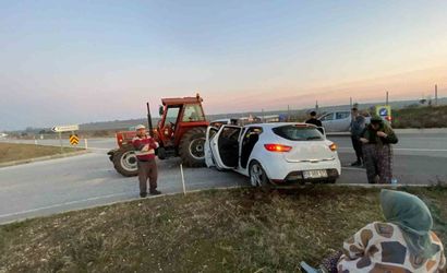 Pınarhisar ilçesi çevre yolunda meydana gelen trafik kazasında, dönüş yapmak isteyen traktör ile bir otomobil çarpıştı. Olay, Erenler köyü kavşağı mevkiinde gerçekleşti.