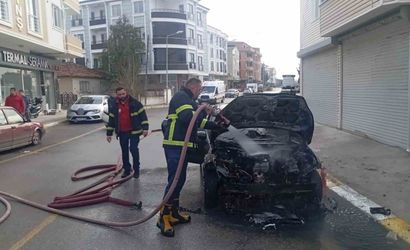 İtfaiye ekipleri alevleri kontrol altına aldı, araç ağır hasar gördü