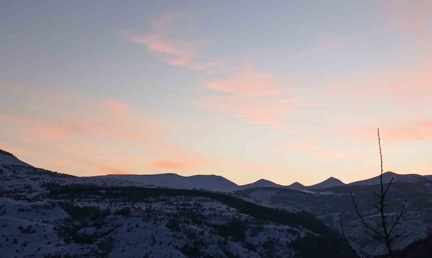 Akşamın alacakaranlığında ise farklı bir sahne ortaya çıkıyor. Güneş battıktan sonra batı ufkunda beliren kırmızının yarattığı tonlar, Posof'un kış manzarasına ayrı bir sıcaklık katıyor.